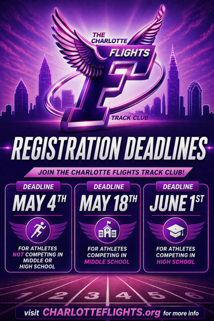 Deadlines for 2026 outdoor season registration are: May 4th: Athletes NOT competing for a middle or high school. May 18th: Athletes competing for middle school. June 1st: Athletes competing for high school.